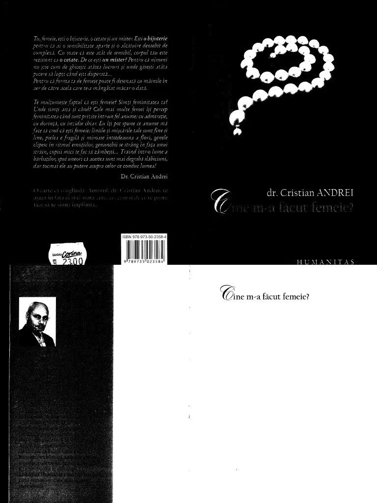Intră și profită de varietatea de oferte!.. Cartea este un bun material. Colecție completă de cărți online. 2010 ''tu, femeie, esti o bijuterie, o cetate si un mister... Cristian andrei este preşedintele fondator al institutului de relaţii umane din bucureşti (www.iru.ro), unde promovează concepte moderne din domeniul etologiei şi teoriei fractale în psihologie.